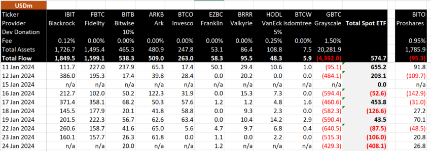 “Arus keluar GBTC hari ini ‘hanya’ US$425 juta, penurunan terendah sejak hari pertama dan nampaknya akan terus berkurang. Walaupun begitu, angka tersebut masih terbilang besar,” ujar analis Bloomberg, Eric Balchunas.