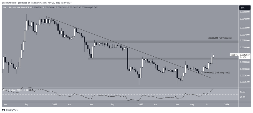 Solana (SOL) menjadi altcoin terakhir yang berpotensi mengungguli kinerja Bitcoin. Pergerakan harga SOL memiliki kemiripan dengan Chainlink. Hal ini karena SOL juga breakout dari garis tren descending resistance jangka panjang dan telah mengalami peningkatan sejak bulan September.
