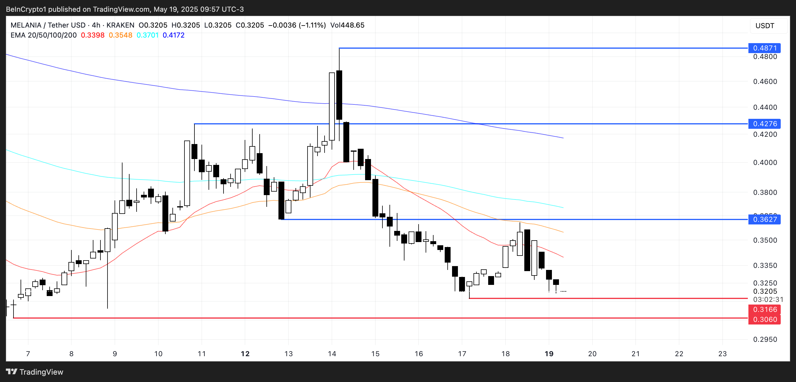 Namun, jika sentimen pasar berbalik arah dan momentum kembali, MELANIA bisa melesat menuju resistance di US$0,362. Bila mampu menembus level ini, peluang untuk reli lanjutan ke US$0,427 dan bahkan US$0,487 akan terbuka lebar.