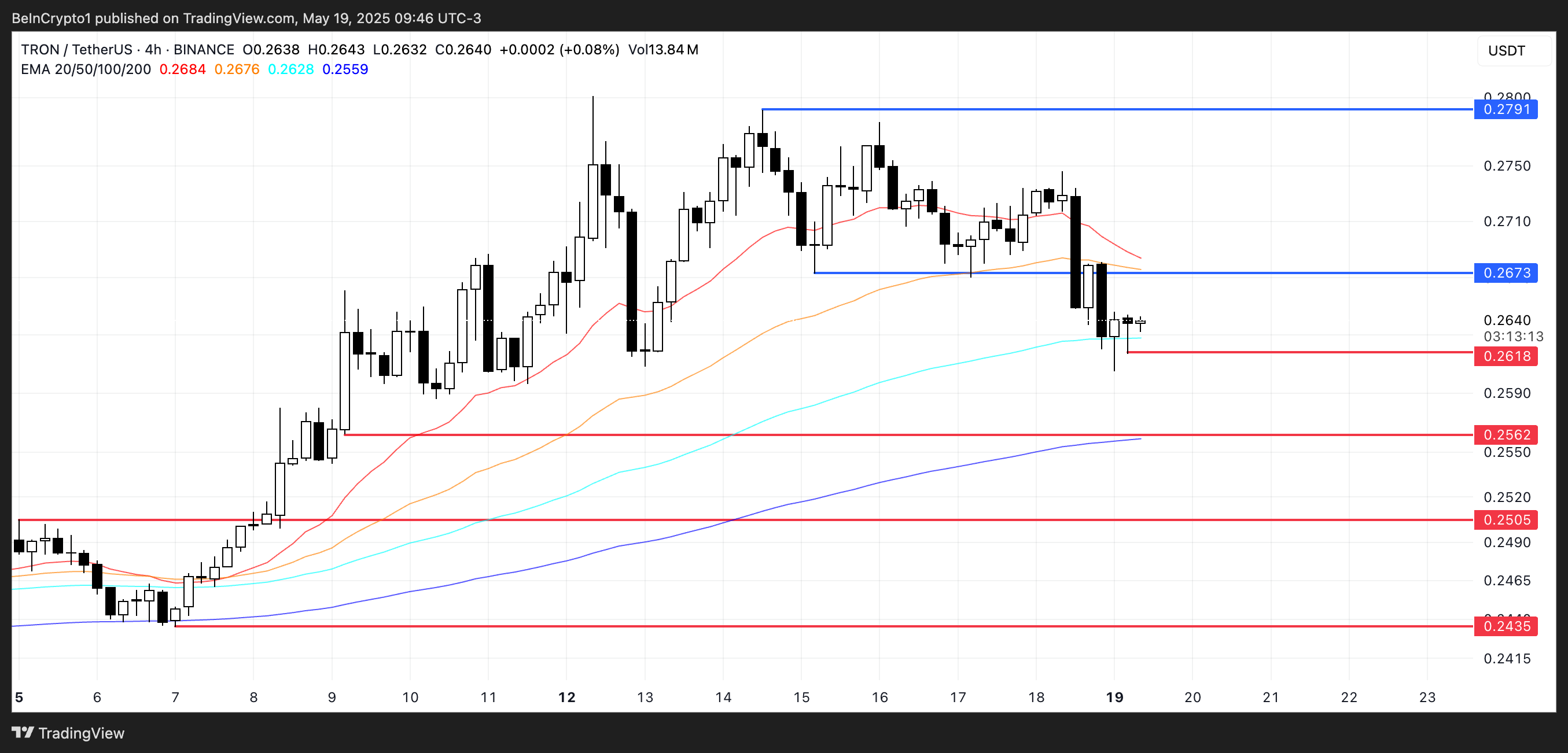 Sorotan ini berpotensi menjadi dorongan positif bagi aksi harga TRX dalam jangka pendek. Jika momentum terus menguat, TRX bisa menembus resistance di level US$0,267. Target kenaikan berikutnya berada di kisaran US$0,279.