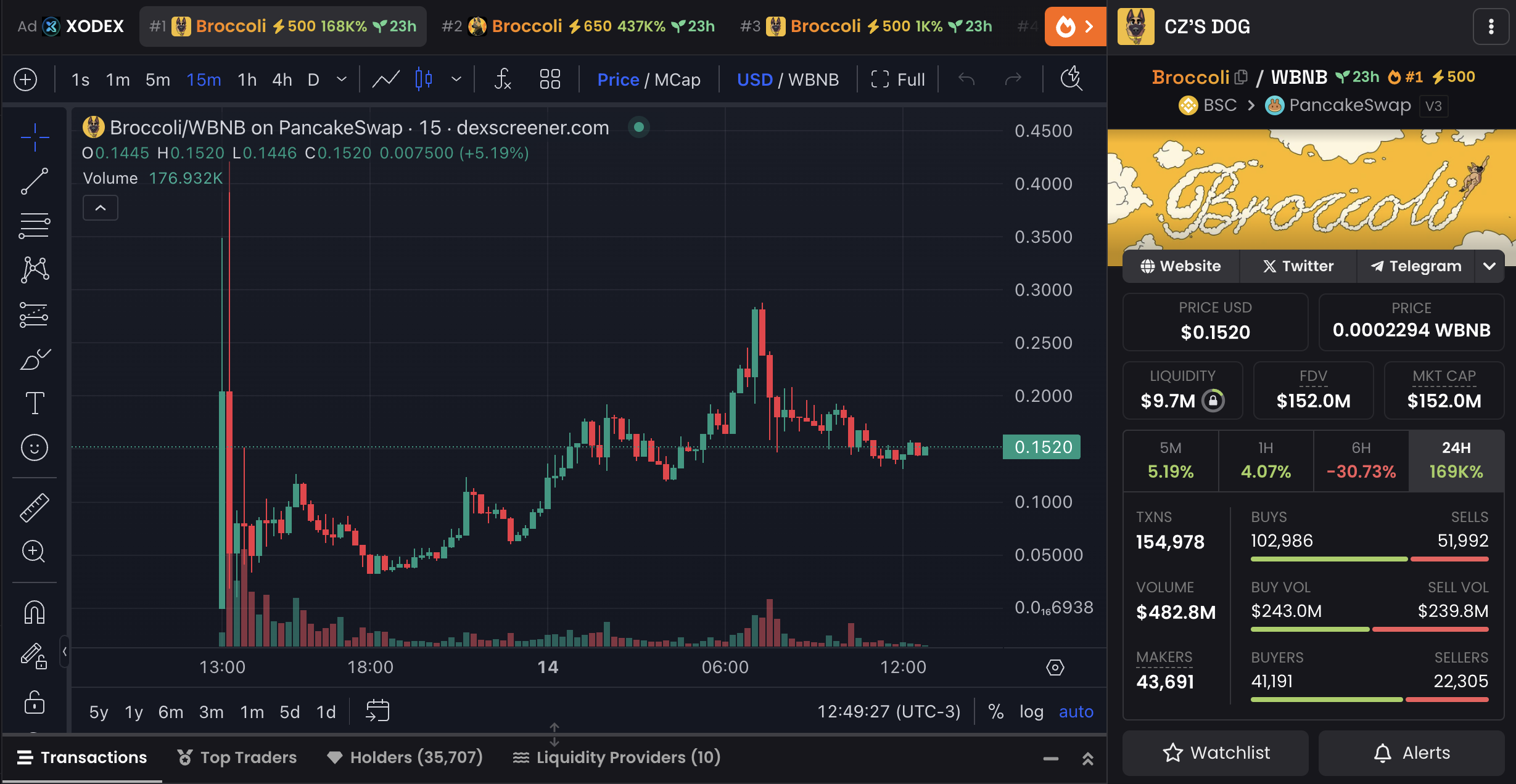 Untuk analisis ini, fokusnya adalah pada token BROCCOLI dengan alamat 0x6d5AD1592ed9D6D1dF9b93c793AB759573Ed6714, yang dibangun di BNB Chain. Di antara banyak meme coin yang muncul dari tren ini, versi ini mendapatkan perhatian paling besar.
