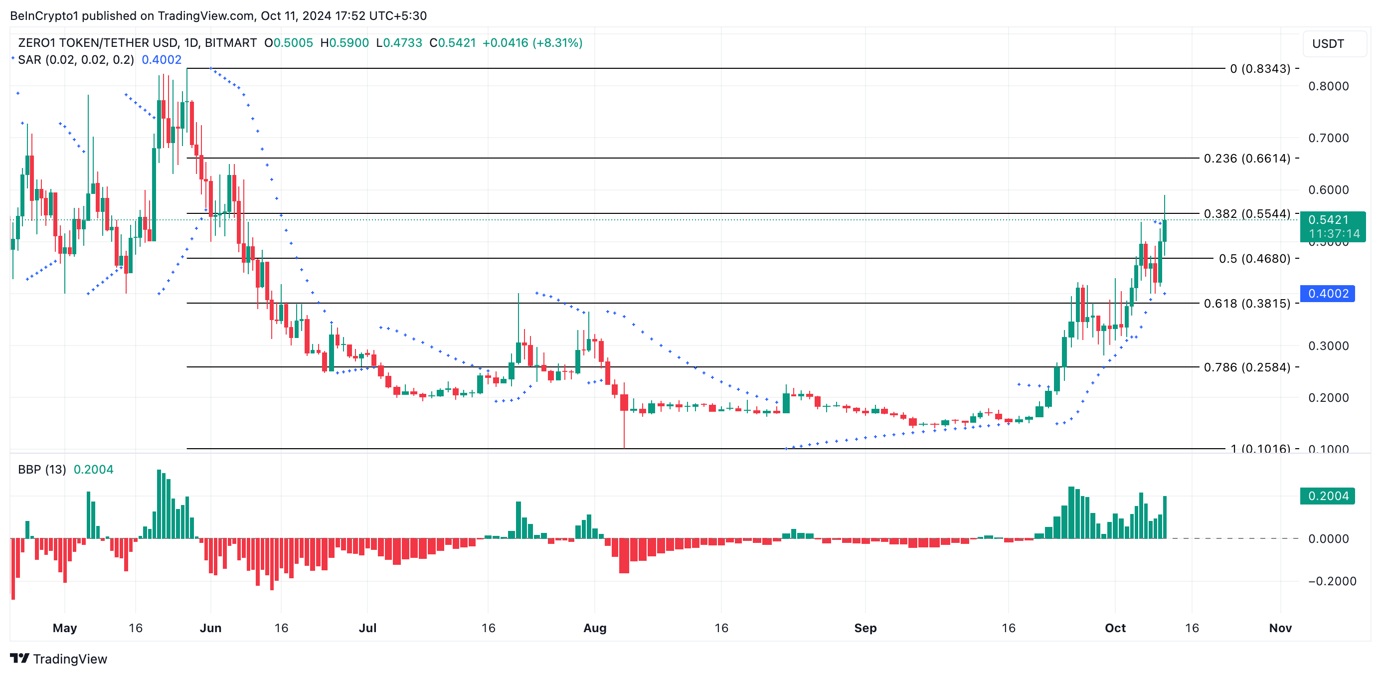 DEAI menggerakkan Zero1 Labs, ekosistem AI terdesentralisasi yang fokus pada pengelolaan data. Saat ini diperdagangkan di harga US$0,54, token ini sukses mencatat reli harga 45% selama seminggu terakhir. Token AI ini terus menikmati bias bullish yang signifikan. Ini tecermin dari Elder-Ray Index positifnya yang saat ini berada di 0,19.