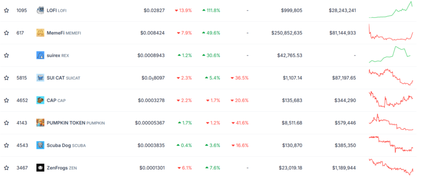 Adapun top gainer-nya saat ini bisa dihitung jari. Faktanya, hanya ada sekitar sepuluh aset yang berhasil menyita perhatian investor. Khususnya, LOFI (LOFI) mengalami lonjakan 128%, kemudian disusul oleh MemeFi (MEMEFI) dengan reli 38% dan SUICAT (SUI CAT) yang melesat 11%.
