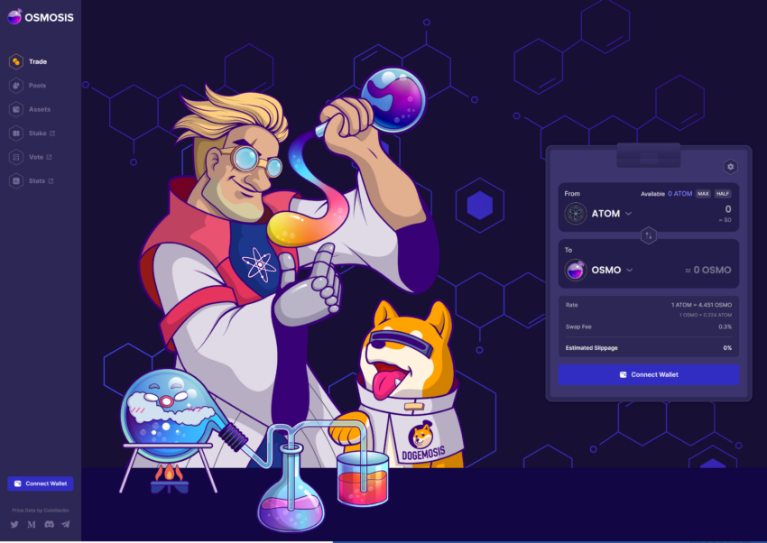 Osmosis, peringkat ke-29 dalam hal TVL, menjadi DeFi ketiga yang paling banyak dikunjungi. Produk DeFi ini menyediakan listing untuk TerraUSD (UST) yang dihasilkan di ekosistem Terra dan banyak token yang beroperasi di ekosistem Cosmos.