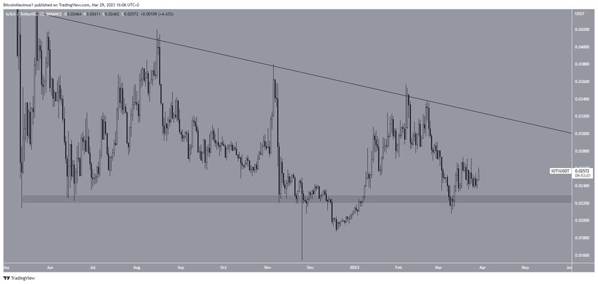 Harga IOTX telah melambung di area support horizontal US$0,022 pada 10 Maret lalu. Sejak saat itu, harganya terus mengalami kenaikan. Jika tren naik ini berlanjut, harga IOTX berpeluang mengukir aksi kenaikan hingga mencapai garis descending resistance jangka panjang di level US$0,030.