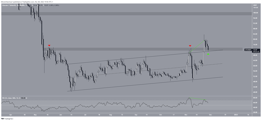 Harga Litecoin (LTC) telah diperdagangkan di dalam ascending parallel channel sejak bulan Juni lalu. Setelah periode konsolidasi yang berlangsung lama, LTC akhirnya berhasil menjebol channel tersebut pada 23 November dan mencapai level tertinggi di titik US$83,66.