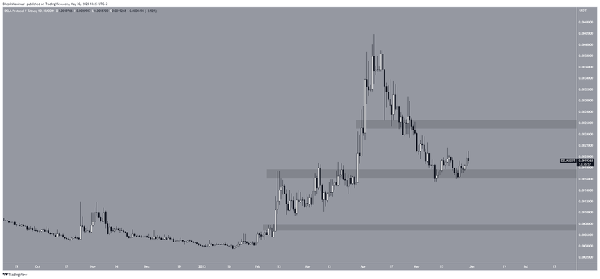 Altcoin terakhir yang jadi rekomendasi untuk masuk watchlist bulan Juni adalah DSLA Protocol. Harga DSLA sempat turun sejak mencapai level tertinggi tahunannya di US$0,0041 pada 7 April. Penurunan tersebut kemudian menyebabkan terbentuknya level terendah US$0,0015 pada 11 Mei.