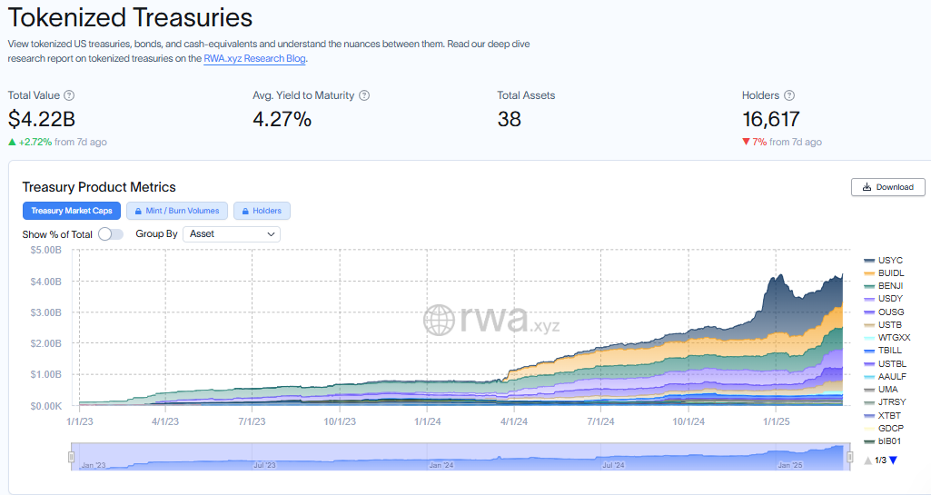 Sementara itu, kebangkitan RWA mengubah lapangan permainan keuangan, dan institusi mulai memperhatikannya. Aset yang ditokenisasi muncul sebagai jembatan antara keuangan tradisional (TradFi) dan DeFi, memberikan investor peluang baru untuk mengakses aset yang menghasilkan imbal hasil. Pemain kunci termasuk BlackRock (BUILD), Franklin Templeton, dan Grayscale.