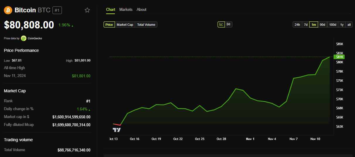 Saat para trader dan investor menantikan data ekonomi AS, Bitcoin telah naik hampir 2% sejak sesi Senin dibuka. Meskipun kenaikan ini moderat, aset kripto perintis ini bertahan dengan baik di atas level psikologis US$80.000, diperdagangkan seharga US$80.808 pada waktu publikasi.