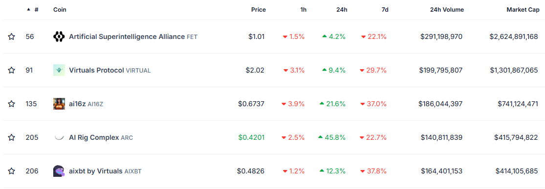 Sponsored SponsoredVirtuals Protocol telah meroket lebih dari 8%, sementara AIXBT dan ai16z masing-masing meraih kenaikan lebih dari 10% karena para investor mengalihkan perhatian mereka ke proyek AI terdesentralisasi.