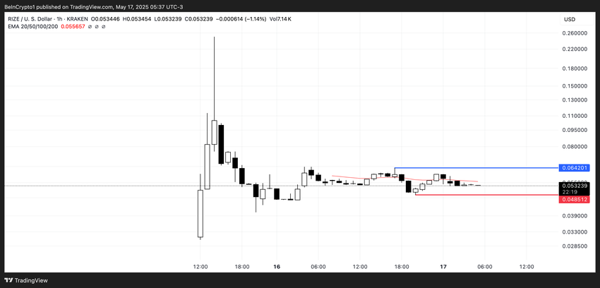 Dari sisi teknikal, token RIZE sedang berada di titik krusial. Jika mampu menembus level resistance US$0,064, momentum bullish berpotensi mendongkrak harga kembali ke kisaran US$0,10.