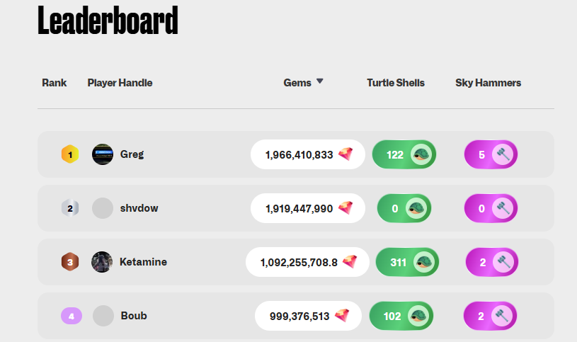 Sementara itu, papan peringkat menunjukkan pemain teratas dengan banyak Gems. Ini menyoroti kesenjangan signifikan yang menimbulkan kekhawatiran tentang distribusi airdrop yang “whale-capped” untuk mencegah hadiah yang terlalu berat di atas.