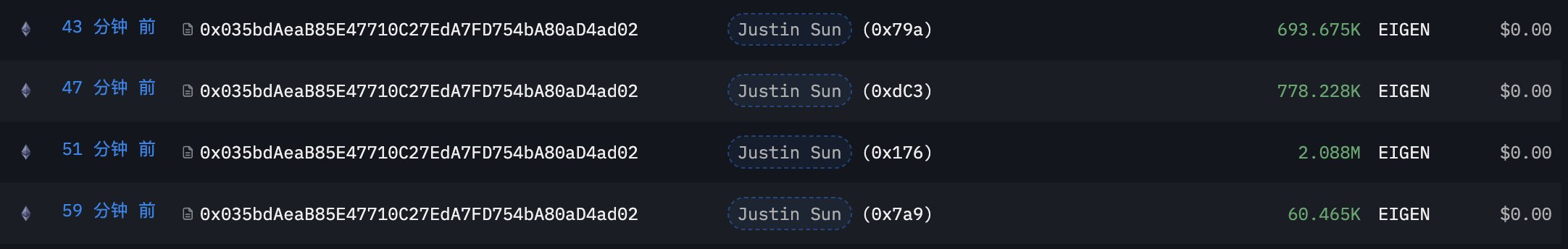 Yang mengejutkan, anggota komunitas mendapati bahwa Justin Sun, sang pendiri jaringan TRON, menerima sekitar 3,62 juta token EIGEN lewat empat alamat wallet.