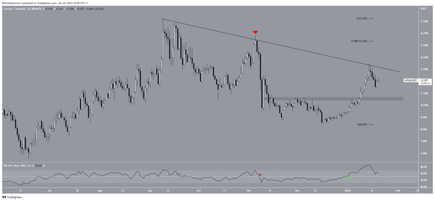 Sebuah garis descending resistance menolak harga Cosmos (ATOM) pada 16 Januari. Aset kripto ini nampaknya masih akan terperosok dalam struktur korektif.