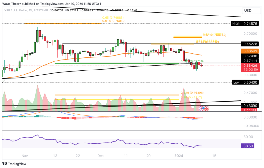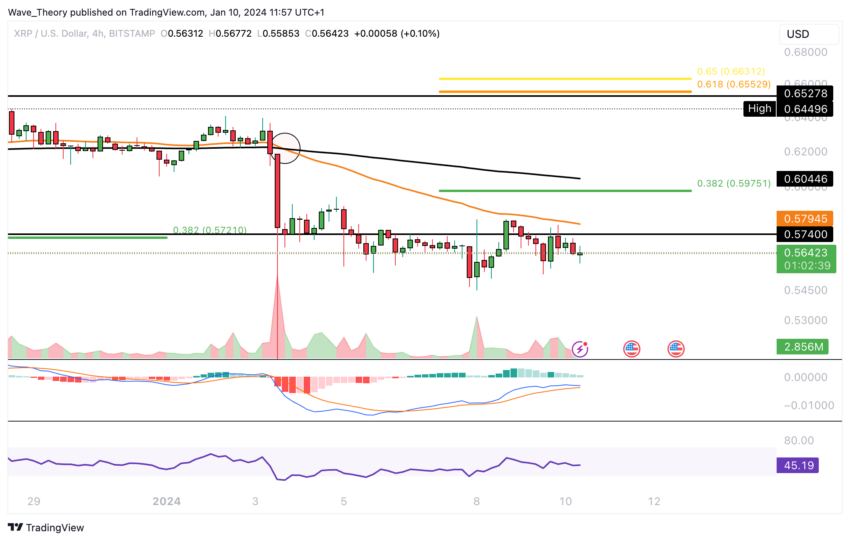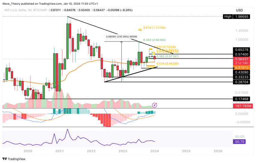 Jika XRP akhirnya memulai tren naik, level resistance Fibonacci yang signifikan akan muncul di kisaran level US$0,597 hingga US$0,65
