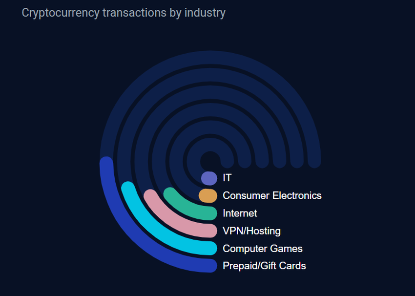 Data dari BitPay dan Blockdata mengungkapkan bahwa konsumen membelanjakan kripto pada layanan VPN dan hosting untuk meningkatkan privasi online mereka. Konsumen juga memanfaatkan aset kripto untuk membayar gift card prabayar, elektronik, dan game komputer.