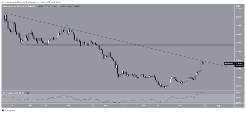 Agar tingkat kenaikannya dapat terus berlanjut dan kemungkinan berakselerasi, maka harga MATIC harus keluar dari garis resisten menurun jangka pendek.
