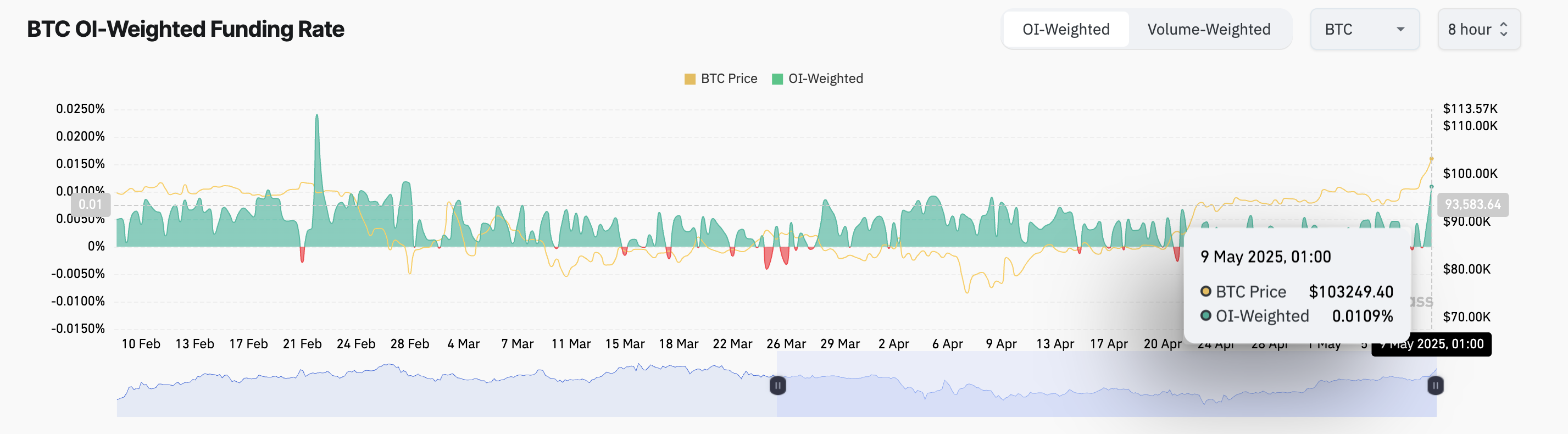 Funding rate yang tinggi seperti ini berarti trader yang memegang posisi long membayar premi untuk tetap dalam perdagangan, yang dapat memperkuat sentimen bullish di pasar BTC dalam jangka pendek.