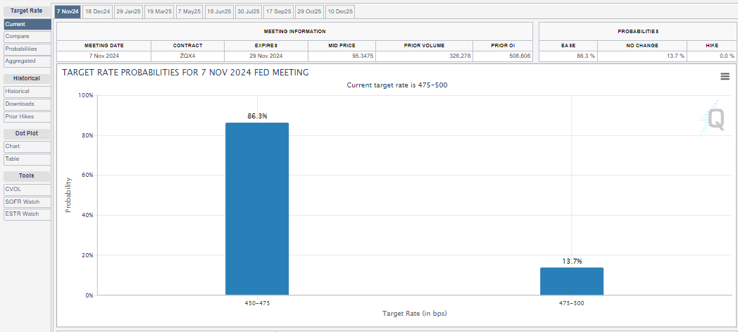 Sebagai tanggapan, CME FedWatch Tool menunjukkan probabilitas 86,3% untuk pemotongan suku bunga sebesar 50 basis poin (0,5%), dibandingkan dengan 13,7% untuk pemotongan 25 bps. Setelah pemotongan 50 bps terakhir, pasar mengharapkan penyesuaian kebijakan signifikan lainnya untuk mengatasi tekanan ekonomi.