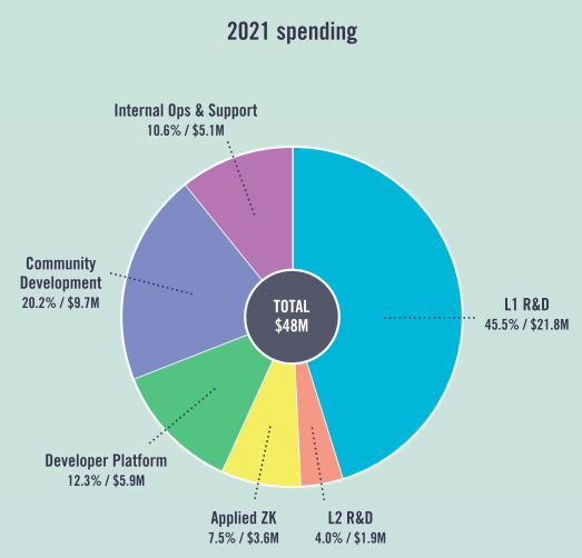 Yayasan EF memaparkan telah menghabiskan kira-kira US$48 juta sepanjang tahun 2021. Sebanyak 45,41% atau setara US$21,8 juta (Rp312,98 miliar) di antaranya dialokasikan untuk penelitian dan pengembangan layer-1 (L1).
