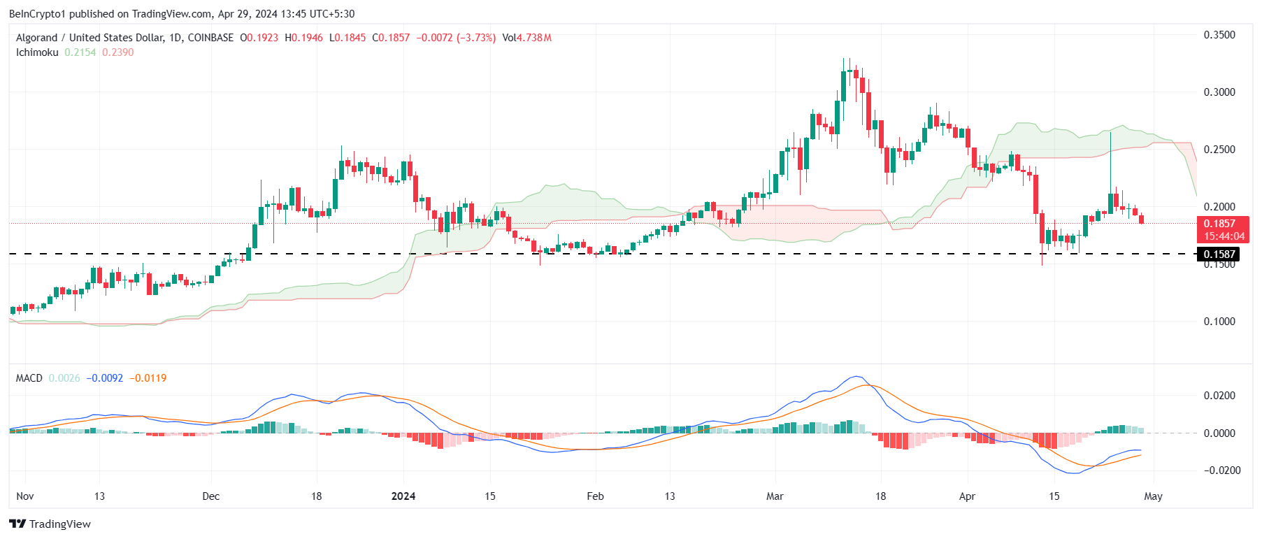 Di tengah sinyal pasar yang bearish serta kurangnya insentif bagi investor saat ini, ALGO berpotensi terjun ke US$0,158. Kemudian, hilangnya garis ini sebagai support floor akan membuat ALGO berisiko jatuh ke US$0,1000.
