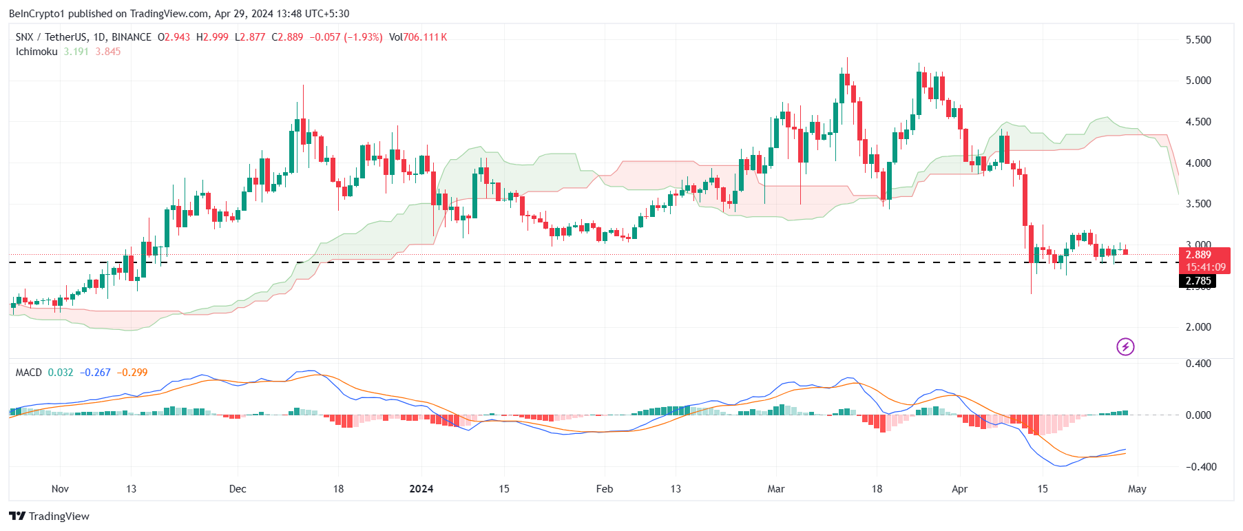 Adapun runtuhnya garis support ini akan menandai level terendah baru tahun ini untuk SNX. Sekaligus, ini juga akan mewakili titik harga terendah yang pernah Synthetix saksikan sejak pertengahan November 2023, yang juga berpotensi menjadi level terendah enam bulan.
