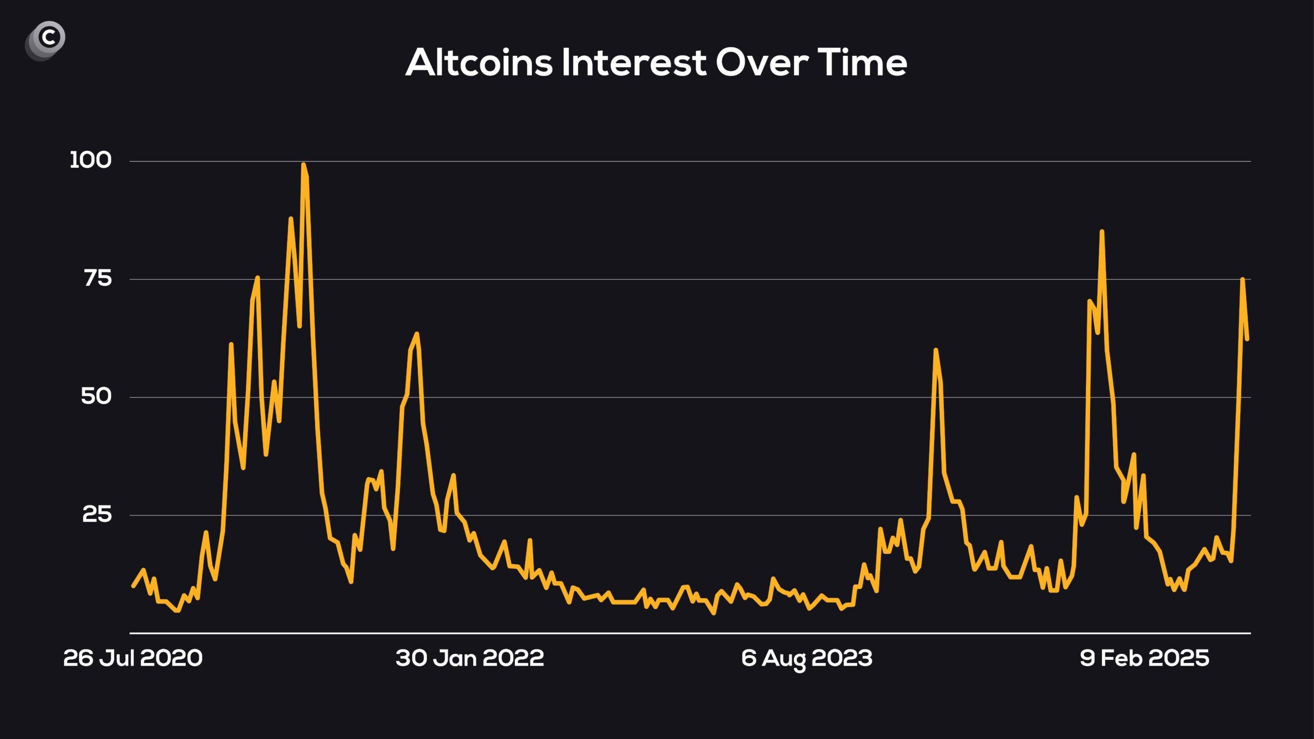 Selain itu, indikator Altcoin Interest dari Coinvo telah meningkat tajam sejak awal tahun, mencerminkan antusiasme baru di kalangan investor ritel.