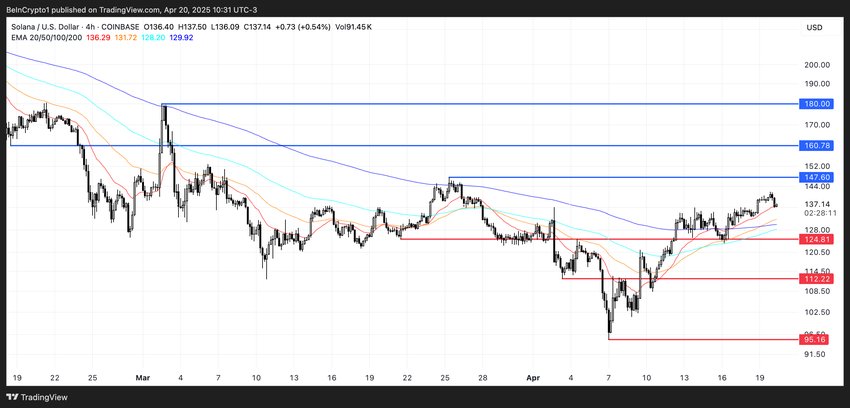 Dalam tujuh hari terakhir, Solana telah menguat 6% dan berhasil merebut kembali level US$130. Ini berhasil memantik ulang sentimen bullish setelah sempat terkoreksi 53% dari 7 Februari hingga 7 April.
