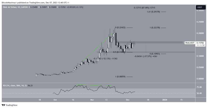 Saat ini, harga PAAL sedang mencoba untuk breakout dari area resistance horizontal US$0,16. Jika berhasil, harga PAAL bisa melesat hingga 90% ke resistance berikutnya di US$0,29.
