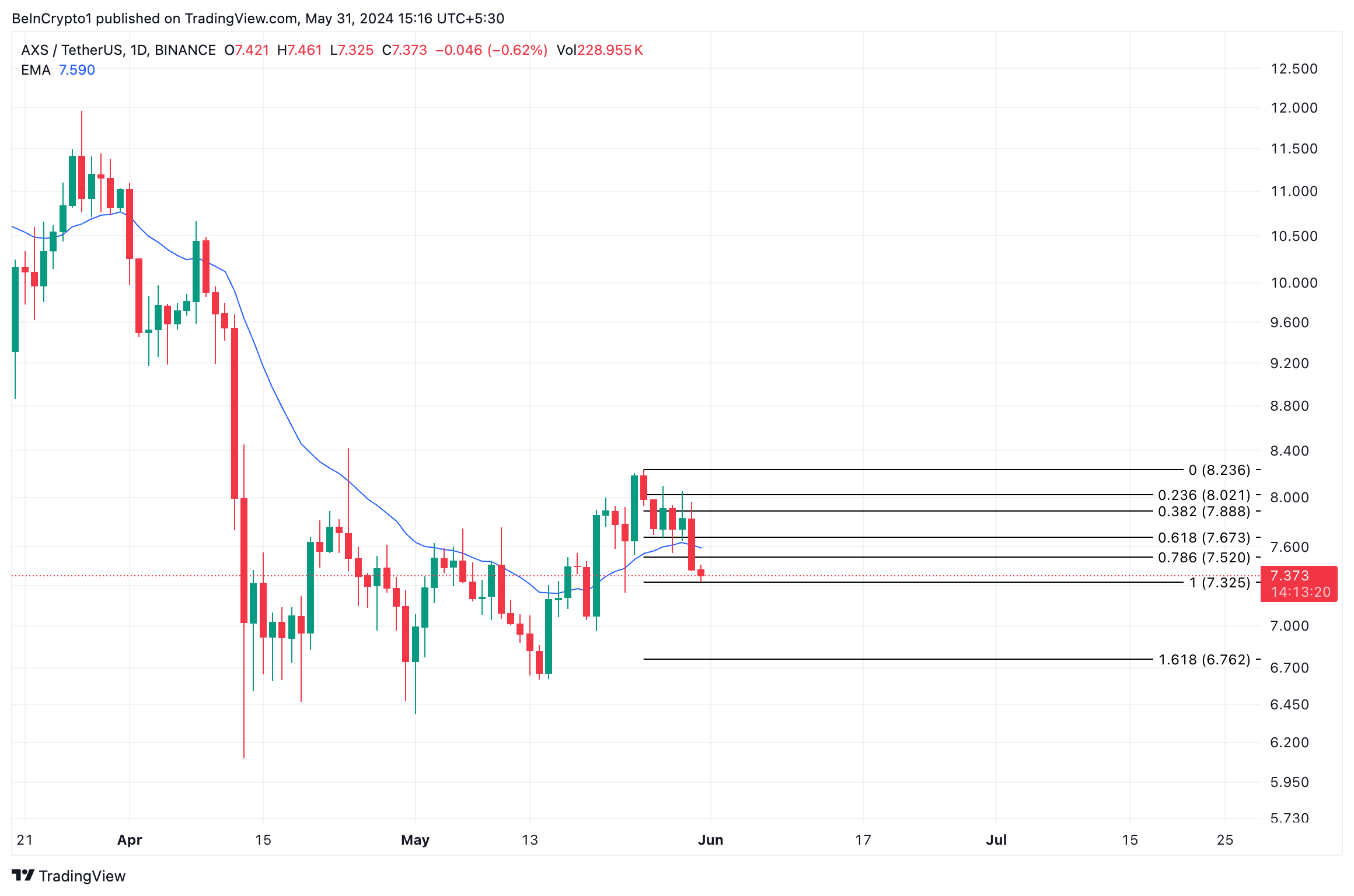 Apabila tekanan jual AXS terus meroket, harganya bisa saja terperosok ke US$7. Kemudian, ke level support jangka panjang US$6,76 jika aksi ambil untung terus berlanjut.
