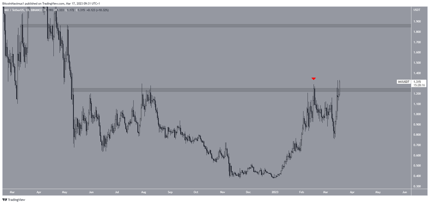 Harga ImmutableX (IMX) telah meningkat pesat semenjak 11 Maret. Harganya sudah mengalami breakout dari area resistance US$1,25 pada 17 Maret. Namun, masih belum mencetak closing di atasnya. Jika kenaikannya berlanjut, maka resistance berikutnya akan berada di US$1,86. Akan tetapi, bila closing harganya di bawah US$1,25, IMX berpotensi menguji kembali titik US$0,90.
