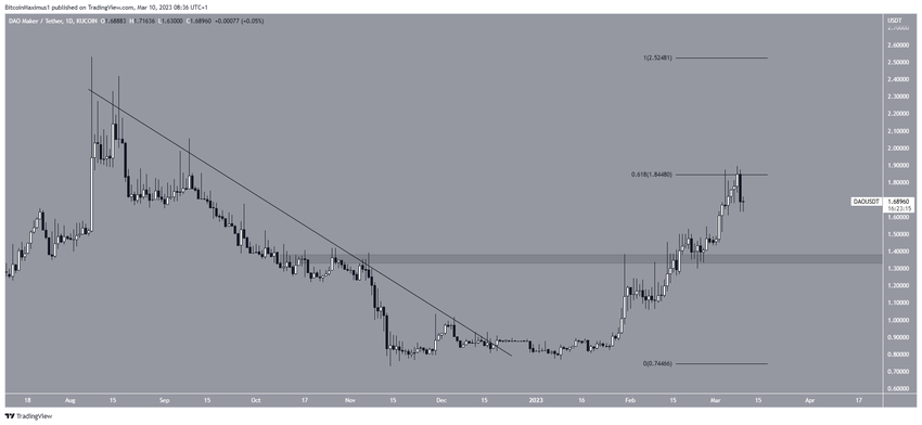 DAO Maker (DAO) sudah bergerak naik semenjak mengalami breakout dari garis descending resistance di awal tahun ini. Pergerakan naik tersebut sempat menggiring DAO hingga setinggi US$1,90 pada 8 Maret kemarin.