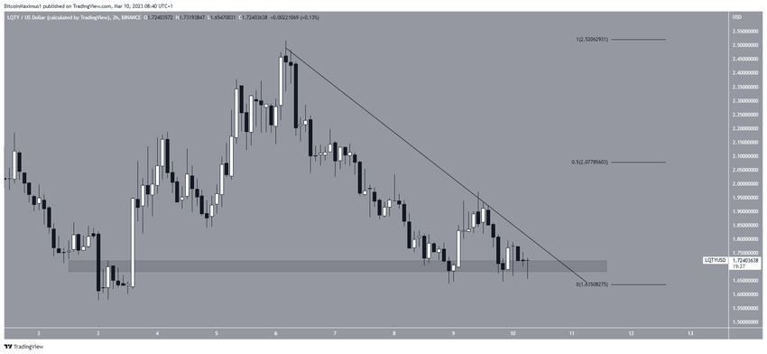 Selanjutnya, altcoin lain yang ada dalam jajaran top gainer minggu ini adalah Liquity (LQTY). Harga LQTY telah menurun di bawah garis descending resistance dari 6 Maret. Saat ini, LQTY sedang diperdagangkan sedikit di atas area support horizontal yang terletak pada US$1,70.