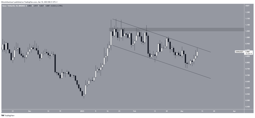 Bila breakout benar terjadi, maka harga KAVA dapat meningkat ke US$1,06. Sebaliknya, andaikan muncul penolakan, KAVA pun perlu bersiap jatuh ke garis support dari channel tersebut, yang terletak di US$0,70.