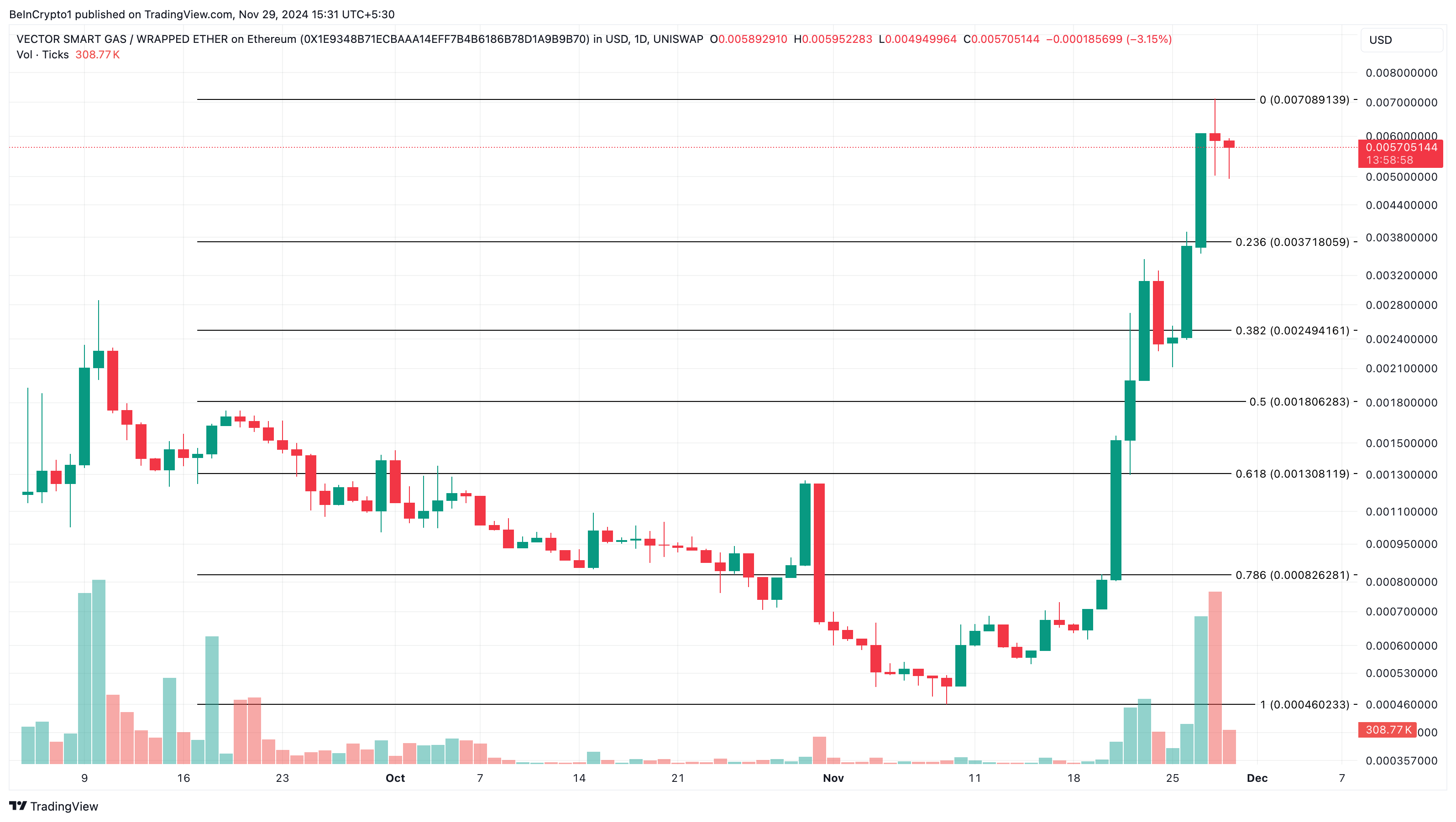 Seperti Hyperliquid, Vector Smart Gas (VSG) tidak terdaftar di exchange terpusat mana pun. Token ini, yang dibangun di atas Ethereum, termasuk di antara altcoin yang sedang tren pada 27 November. Kemunculannya kembali dalam daftar menunjukkan bahwa minat terhadap token ini masih ada.