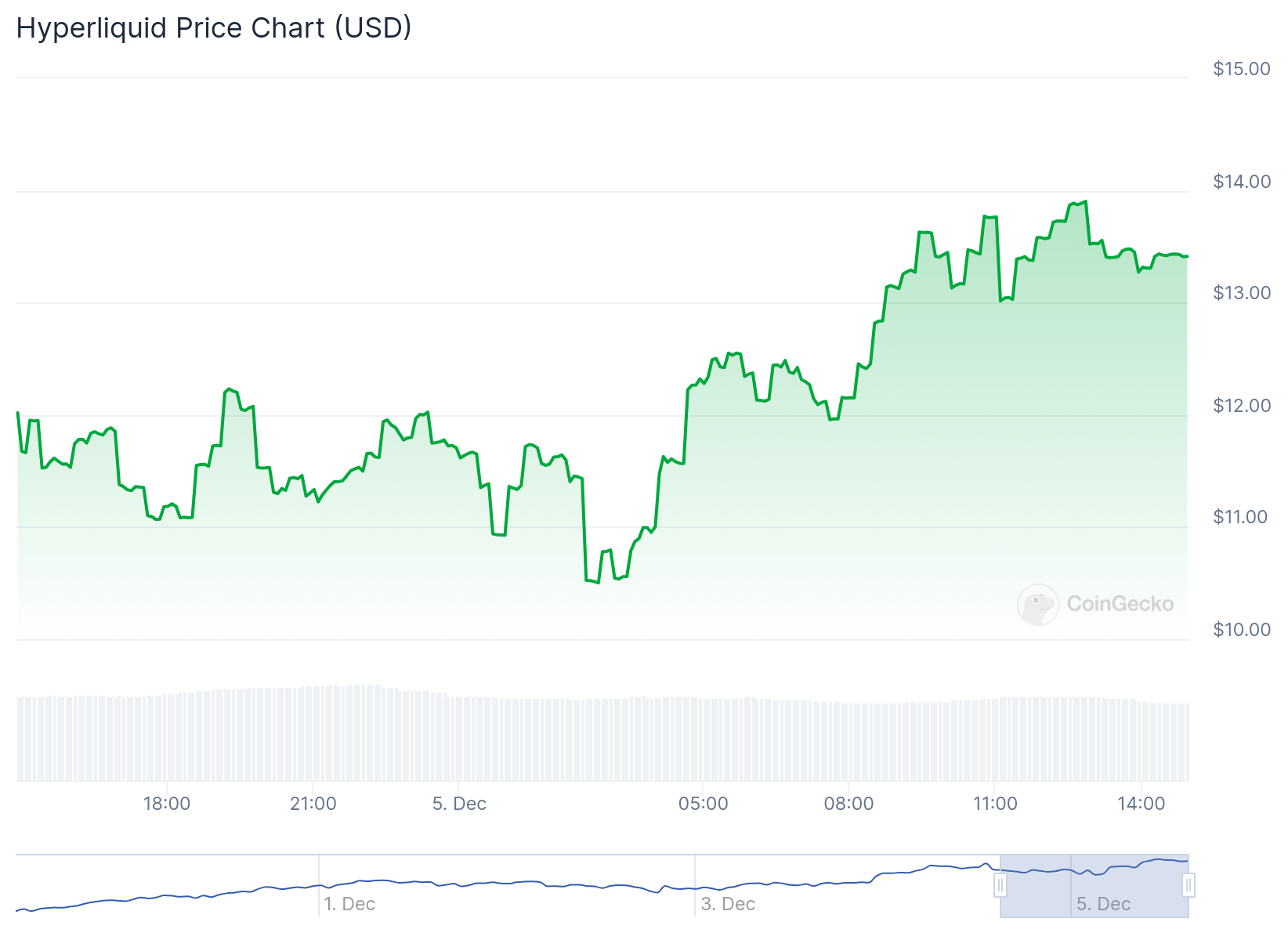 HYPE, native token dari decentralized exchange (DEX) Hyperliquid, sedang trending terutama karena aksi harganya. Dalam 24 jam terakhir, harga HYPE sudah menguat sebesar 11,60% dan sekarang diperdagangkan di angka US$13,45.