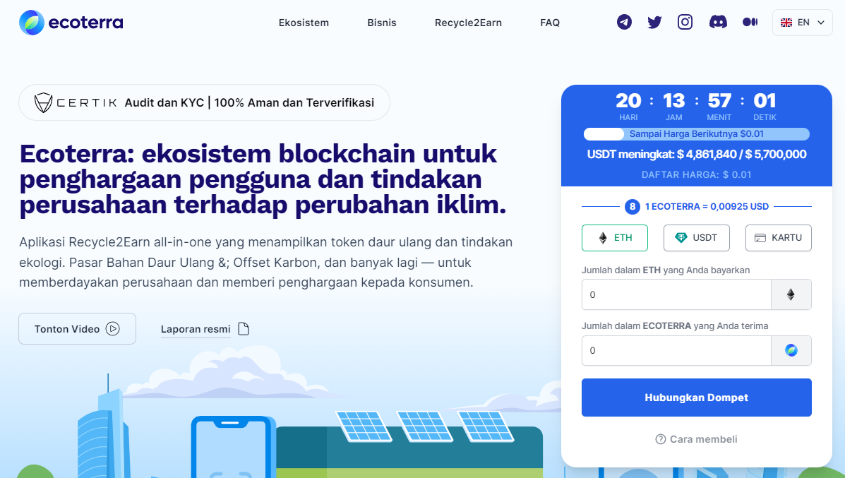 Pada saat berita ini diturunkan, investor dapat membeli token $ECOTERRA dengan harga US$0,00925 per token.