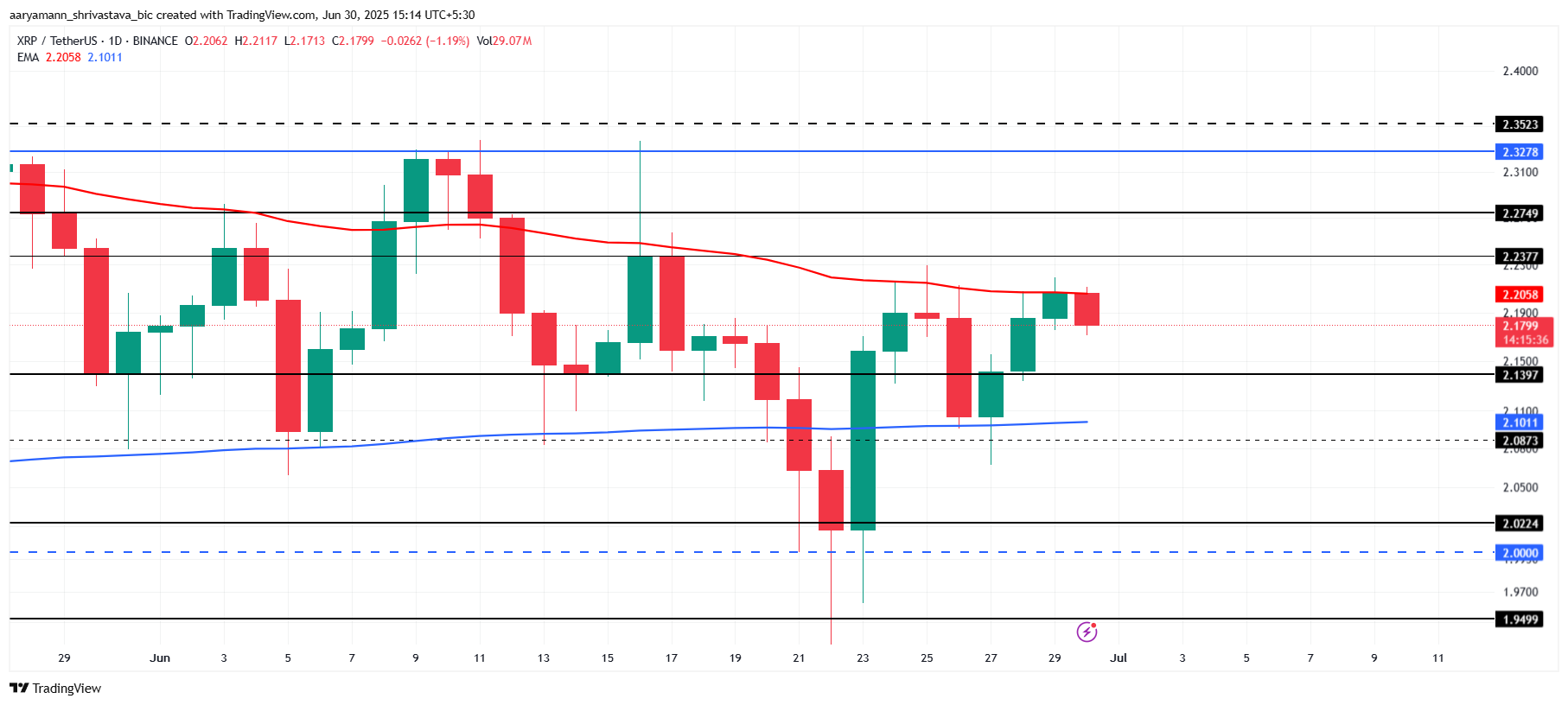 XRP saat ini diperdagangkan pada US$2,17, sedikit di bawah level resistance krusial US$2,23. Altcoin ini menunggu sinyal bullish kuat untuk melewati hambatan ini. Salah satu katalis potensial bisa jadi peluncuran sidechain baru.