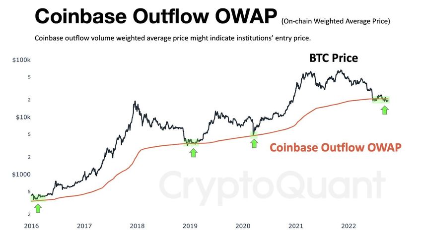 Sementara itu, pada grafik kedua, yaitu dari unggahan analis @ki_young_ju di Twitter, memberikan argumen terkait berakhirnya bear market. Kemudian, berdasarkan apa yang disebut OWAP outflow (on-chain weighted average price) untuk Coinbase, kita dapat melihat bahwa harga BTC saat ini berada di area support jangka panjang.