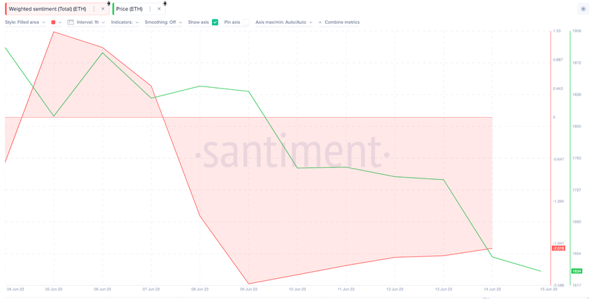 Seperti yang terlihat di bawah ini, Weighted Sentiment ETH kini tetap berada di bawah zona kritis 2.0 sejak tanggal 9 Juni.