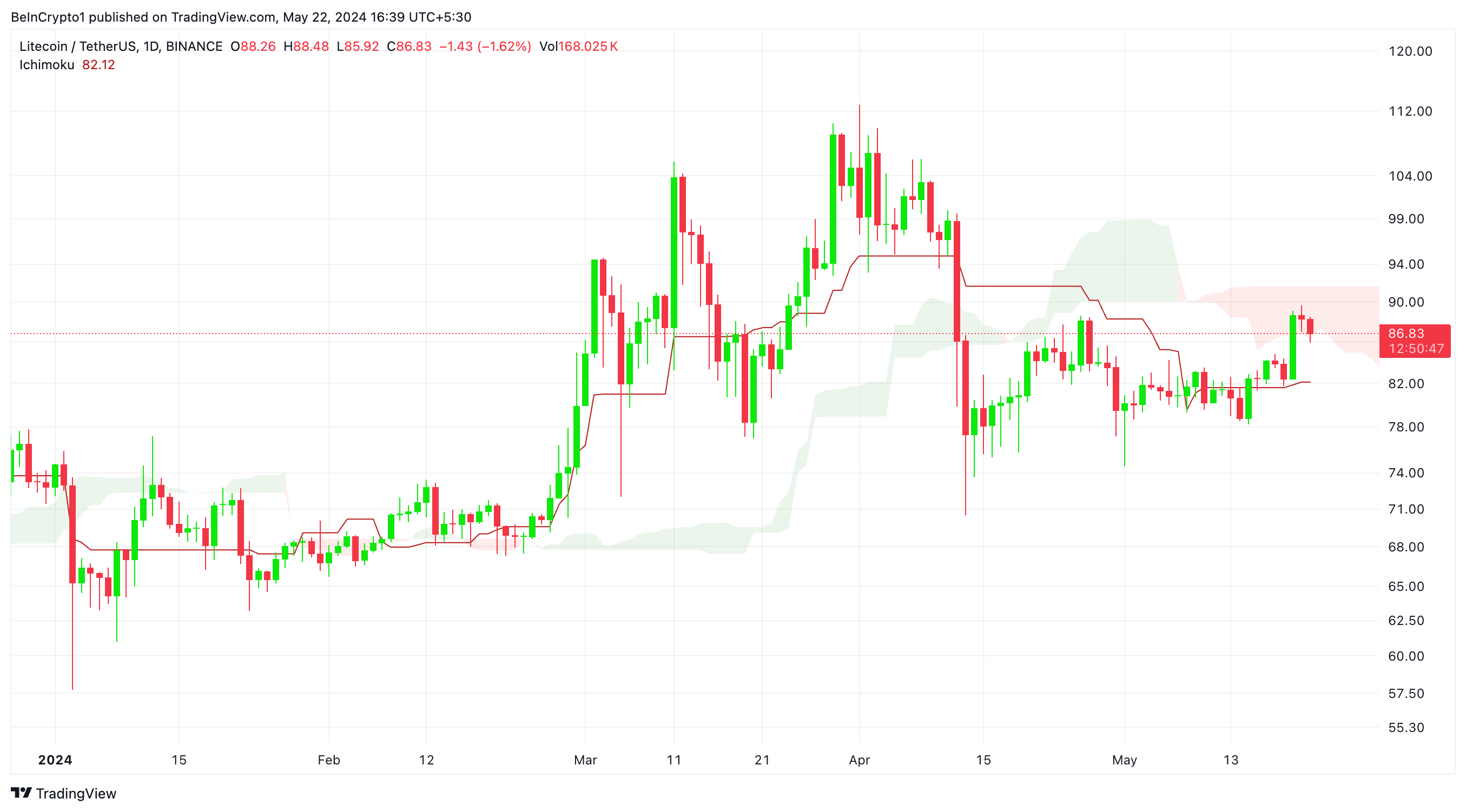 Litecoin menunjukkan sinyal bullish yang menjanjikan dengan menguji Ichimoku Cloud dan mempertahankan nilai SOPR dan aSOPR yang positif.