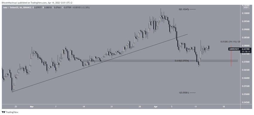 ANKR telah bergerak naik sepanjang garis ascending support dari sejak 25 Februari. ANKR pun sempat mencapai titik tertingginya di US$0,102 pada 2 April.