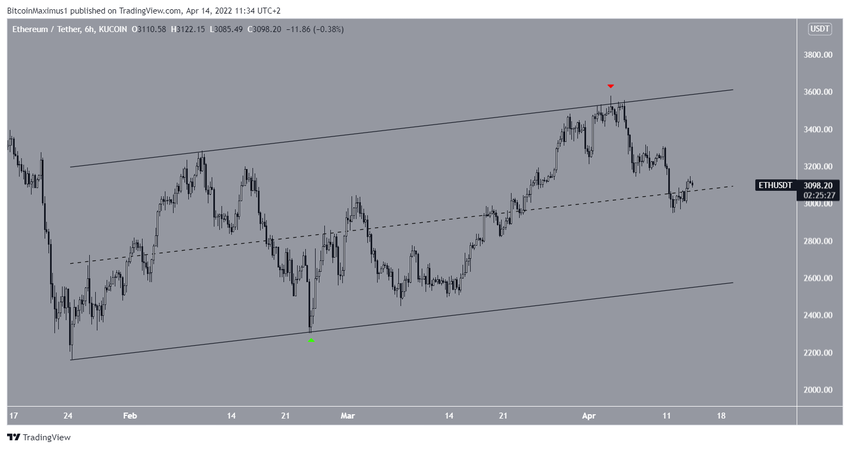 Ethereum (ETH) diperdagangkan di dalam channel ascending parallel sejak 24 Januari lalu. Baru-baru ini, ETH melompati garis support di channel ini pada 24 Februari (lihat simbol hijau di gambar). Kemudian, ETH mencapai posisi tertinggi di US$3.580 saat tanggal 3 April. Tercapainya posisi tertinggi itu bertujuan untuk memvalidasi garis resistance dari channel ascending parallel yang ada (lihat simbol merah di gambar).