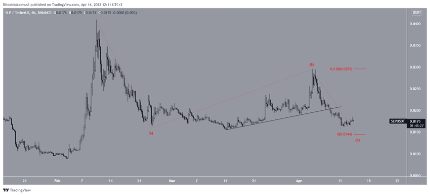 Smooth Love Potion (SLP) had been increasing alongside an ascending support line since March 14. This upward movement led to a high of $0.0295 on April 4. Dengan memberikan gelombang A:C rasio sebesar 1:0,618, akan menuntun SLP ke titik terendah di US$0,0144.