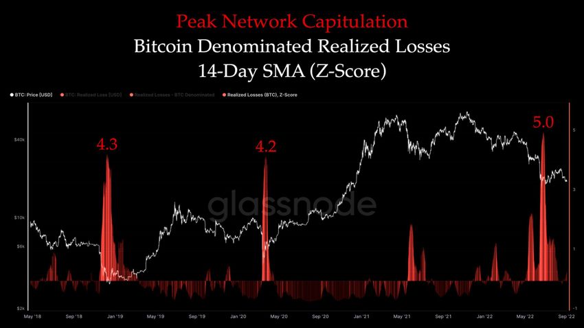 Dan yang terakhir, analis kripto terkenal @TheRealPlanC menulis cuitannya yang melampirkan grafik indikator Denominated Realized Losses BTC.
