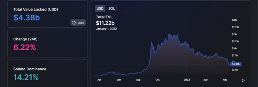 SponsoredPada 1 Januari, Solana memiliki TVL kurang lebih sebesar US$11,22 miliar. Kemudian pencapaian tersebut turun menjadi US$4,38 miliar di tanggal 15 Mei.