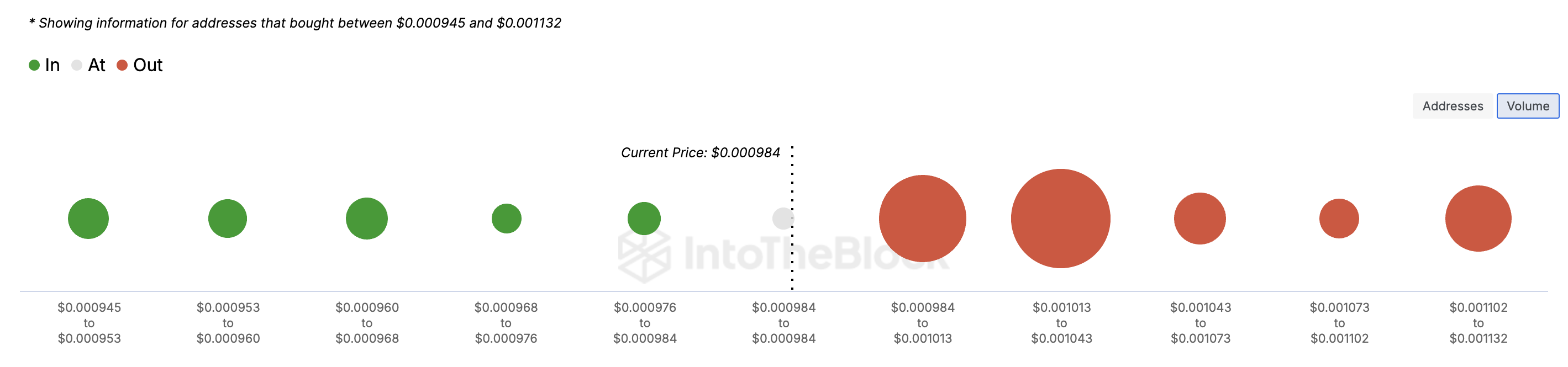 Seperti yang terlihat di atas, kelompok ini membeli koin Telegram antara US$0,00098 dan US$0,0011. Angka ini berarti bahwa 61% pemegang DOGS mengalami kerugian. Sebagian besar sisanya berada pada titik impas, sedangkan sejumlah kecil memegang dalam keuntungan.