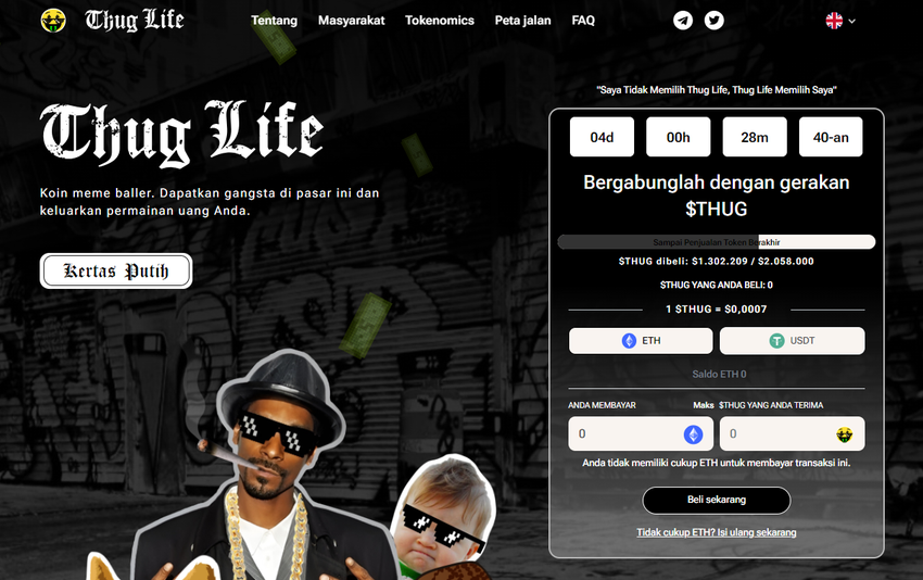 Investor awal dapat membeli token $THUG hanya dengan harga US$0,0007, memberikan kesempatan menarik bagi mereka yang mencari sensasi koin meme berikutnya.