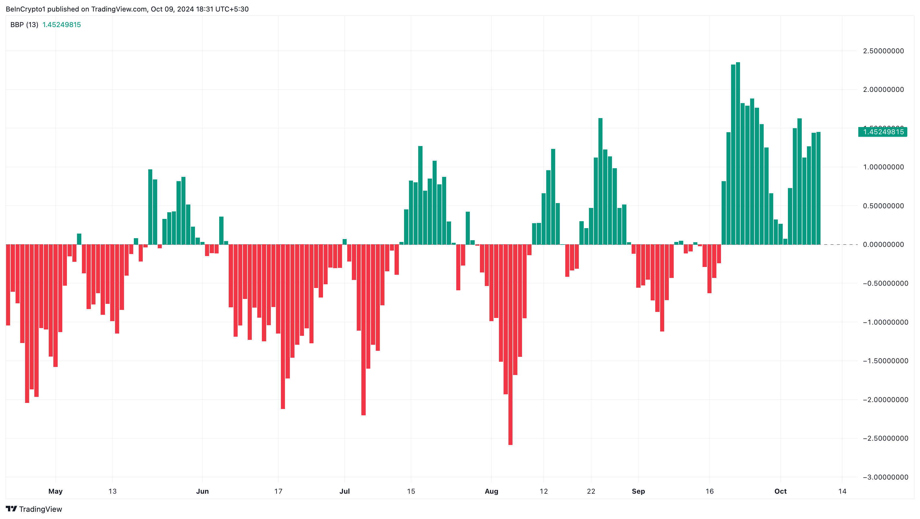 Akan tetapi, menurut sinyal yang diperoleh dari grafik harian, situasinya mungkin berbeda dalam kasus Aptos. Salah satu indikator yang mendukung prediksi ini adalah Bull Bear Power (BBP).