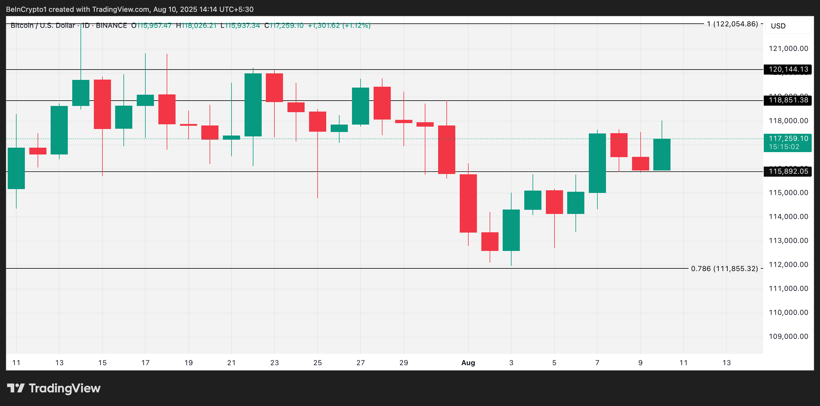 Kombinasi permintaan institusional yang diperbarui dan kepercayaan miner ini memperkuat argumen untuk kembalinya BTC dalam jangka pendek ke atas US$120.000. Namun, untuk ini terjadi, koin utama ini harus terlebih dahulu menembus resistance di US$118.851.